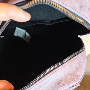 Stylish backpack with unique design. Features purple and black colors. Perfect for daily use.