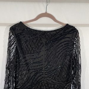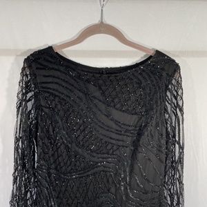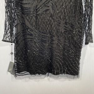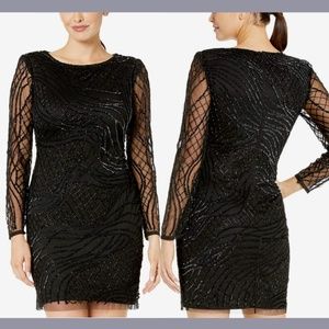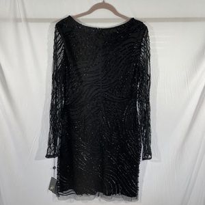 NWT Adrianna Papell [ 12 ] Sequin Beaded Long Sleeve Dress in Black