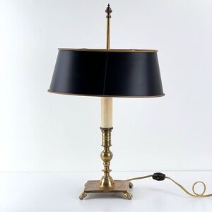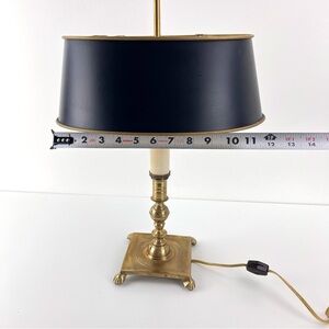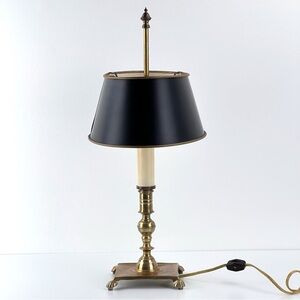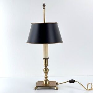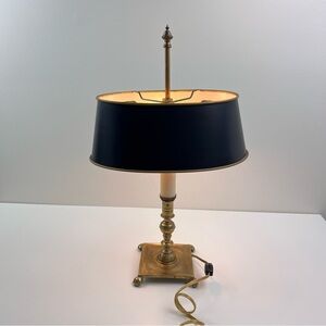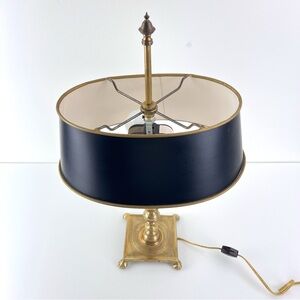 Vintage French Tole Brass Double Bulb Table Lamp With Black Shade