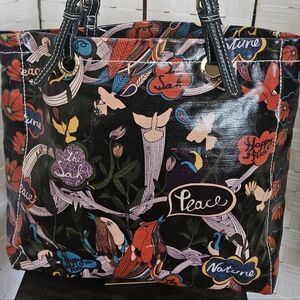Sakroots Tote Bag Large Black Multicolor Peace Nature Floral Birds Art Purse