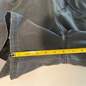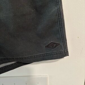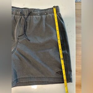 Men’s hollister swim trunks + size medium + faded black color + side pockets & mesh liner as shown + no flaws / good, used condition with light wear + approx inseam is 6in / length measurement in photos + quick drying material + worn once to try on + ships from 100% smoke free home