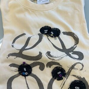 Authentic Loewe x Studio Ghibli limited-edition T-shirt from the Spirited Away capsule collection. This highly sought-after piece features the iconic Loewe Anagram logo adorned with embroidered Soot Sprites (Susuwatari) — a signature detail from Studio Ghibli’s beloved films.