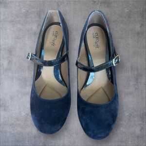 Euro Soft Navy Blue Suede Strapped Elegant & Comfy Mary Jane 3” Heels W 9.5 M