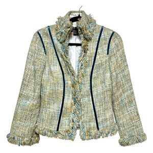 Vintage Old Money Bouclé Tweed Fringe Blazer Womens Size 4 Parisian Chic Blazer