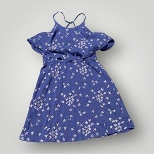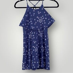 Old Navy sleeveless/tank dress. Covered with tiny starfish! My daughter wore it for July 4th because I thought they were stars! Silly me! So fun! Cute preloved condition! 🤗 Look closely in photo, far bottom you’ll see two faded red streaks (approx 1”) and top strap has a teenie white spot. Length 28” shoulder to hem. Still great condition! Enjoy!