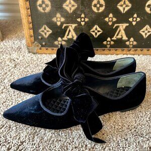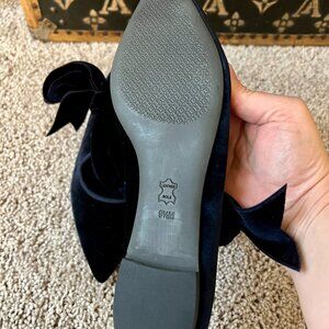 Tory Burch Clara Navy Blue Velvet Bow Flats, NEW
