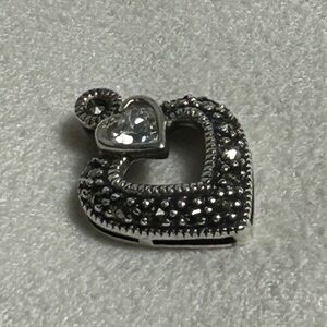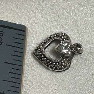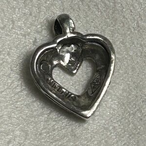 Sterling Silver Crystal Heart Pendant J / J Signed 3/4" x 1/2" Cutout Middle