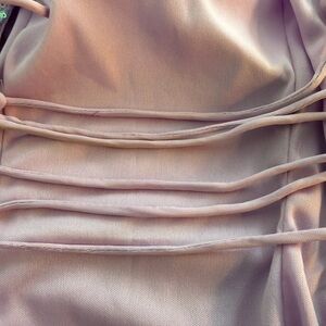 Elegant purple dress with sequin details perfect for Homecoming or cocktail party. Features spaghetti straps and intricate patterns. See last photo for minor call out on back lacing straps.
