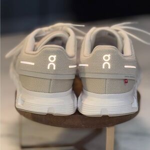 On Cloud 6 Women’s Running Shoe Pearl White Size 11. Like new. Worn once and were slightly too big for me. Very small stain on toe that I’m sure can be removed. Shown in pic. Weight: 216.0g