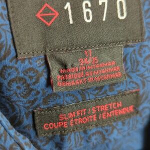 1670 Shirt Mens 17 Slim Fit Blue Floral Stretch Sleeve Button Up Dress 34/35