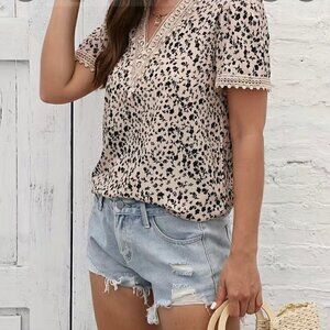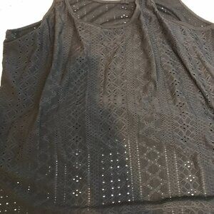 EYELET SPAGHETTI STRAP TOP AND FLORAL LACE TRIM BLOUSE V NECK SIZE XL