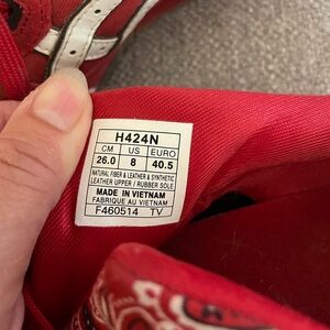 ASICS released the Gel-Lyte 3 'Red Bandana' in July 2014. The retro runner sports a red textile base, overlaid with textured suede paneling in matching red. Contrasting hits of color arrive via black molded eyelets and ASICS' signature side stripes in white leather. The shoe's straightforward design is embellished with a bandana print on the collar and split tongue.