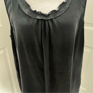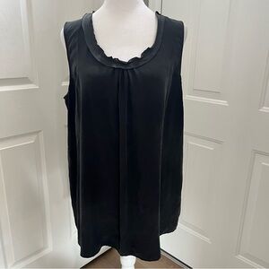 J.Jill Black 100% Silk Sleeveless Pleated Top Blouse Large Scoop Neck Minimalist