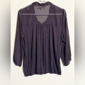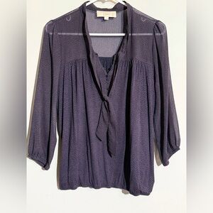 Loft size Medium women’s slip over blouse with a button & bow tie neckline that can be tied multiple ways. Flowy and stylish design. Elastic on sleeve and bottom openings. Like new condition.