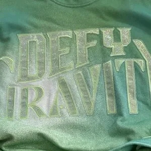 Eye-catching green ombre sweatshirt with 'Defy Gravity' design. Perfect for casual outings.