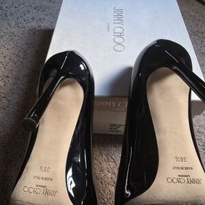 Elegant glossy black heels. Ideal for sophisticated events. Classic Jimmy Choo design. Pretty Good condition