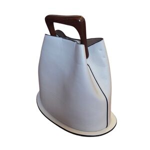 Culbia Shoulder Handbag Bucket Bag White with Wooden Handle