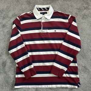 Tommy Hilfiger Rugby Long Sleeve Shirt Mens L Large Striped Red Blue White