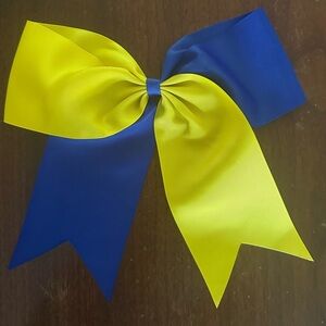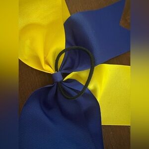 Cheer Bow Large Blue Gold Yellow Rubber Band Spirit Bow