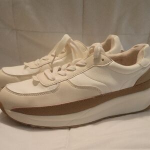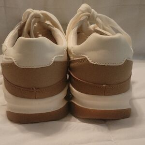Colors are white and light beige with camel color accent