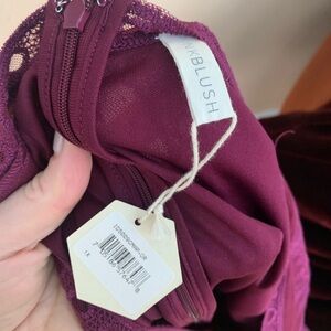 NWT BURGUNDY AND PINK FLUTTER SLEEVE MAXI DRESS | V-NECK FLUTTER SLEEVE FULL LENGTH DRESS W LACE OVERLAY, XL