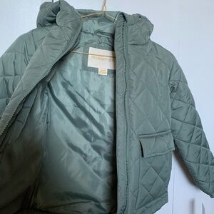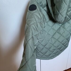 New Madden Girl quilted kids jacket in sage green,size 6/6X. Chic quilted jacket with a cozy hood. Ideal for chilly days.