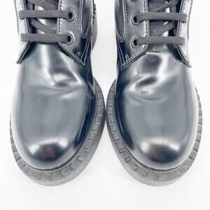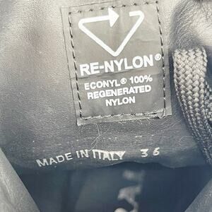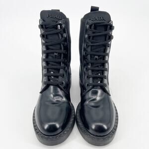 Prada Black Spazzolato Re-Nylon Metal Triangle Logo Combat Ankle Boot size IT 36