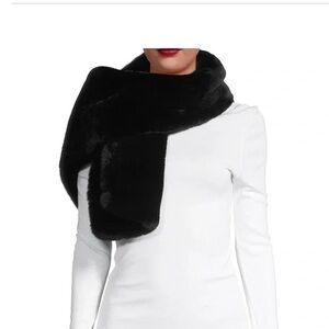 Adrienne Vittadini Black Faux Mink Fur Pull Through Scarf