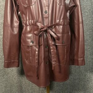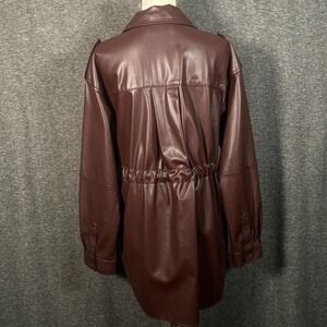 Marissa Webb Faux Leather Shacket Burgundy Long Sleeve Oversized Jacket Size 10