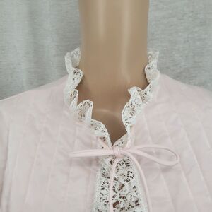 Barbizon Vintage Satin Serene Nylon Pink Quilted Jacket with Cream Lace Trim