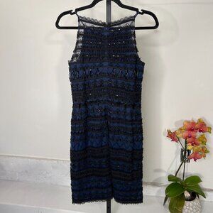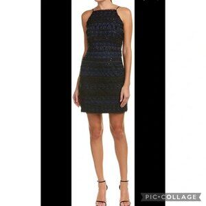 Aidan Mattox Womens Black Twilight Geometric Beaded Illusion Sheath Dress Size 6