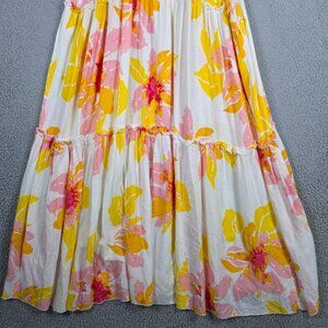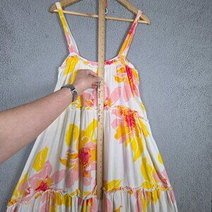 Free People Dress Large Moonshine Linen Blend White Pastel Floral Midi Tiered