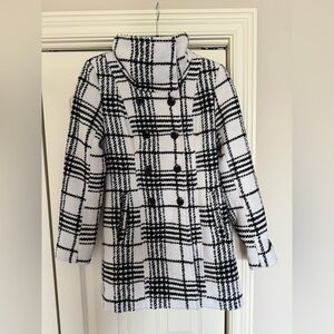 BCX double breasted pea coat in black and white plaid. The coat is in excellent condition and was only worn once. There are no stains, rips, or tears. Comes from a pet-free and smoke-free house.