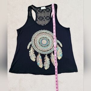 Free Kisses Lace Back Tank Top Metallic Feathers Woman's Size Large Made In USA