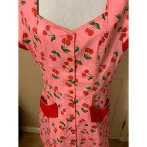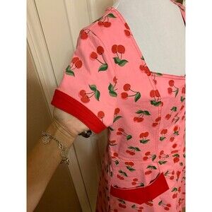 Unique Vintage Pink Denim & Cherry Print Fit & Flare Dress XL 14 NWOT