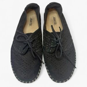 Earth Pax Oxfords Sneakers Shoes Black Perforated Suede Casual Lace Up Size 9