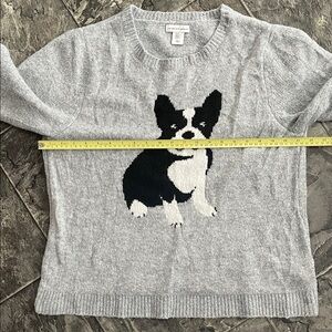 Cozy gray knit sweater with charming Boston Terrier on front by CUPCAKES & CASHMERE. Very soft & comfortable sweater!