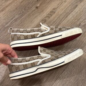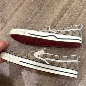 Gucci Beige and Brown Patterned Slip-On Loafers