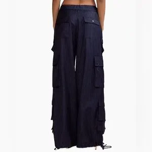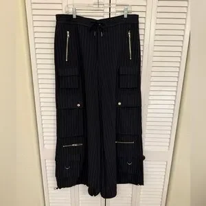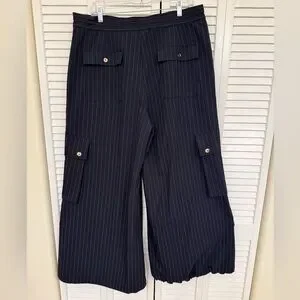Cynthia Rowley Blue Pinstripe Cargo Dress Pants with Gold Details