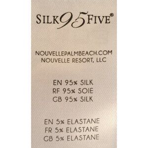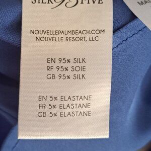 Bust: 44", Length: 29", 95% silk/5% spandex, hand washable.
