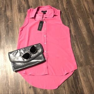TAGS: Rachel Zoe, tunic, sleeveless, button down, button up, high low, pink