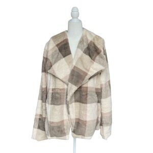 Mystree Faux Fur Jacket in Cream and Tan With Pockets Size Large Neutral