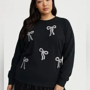 Torrid Black Fleece Sweatshirt with Silver Bow Accents