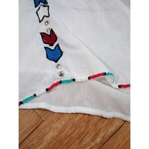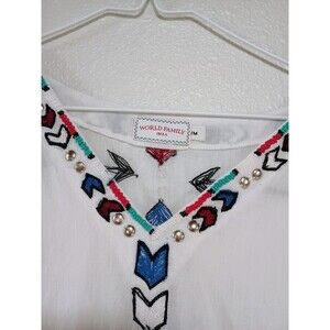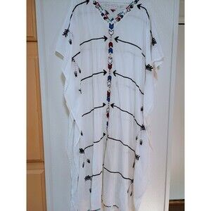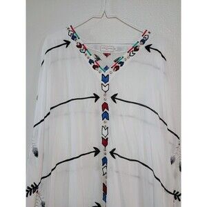 World Family Ibiza White Feather-Embroidered Beaded Tunic / Kaftan – Boho Dress