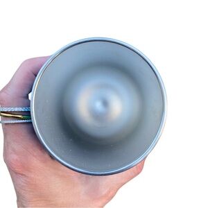 Sleek YETI tumbler in vibrant blue. Keeps drinks hot or cold. Durable and stylish.
