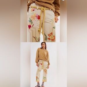 Free People We The Free NWOT Floral Electric Sands Embroidered Cropped Pants