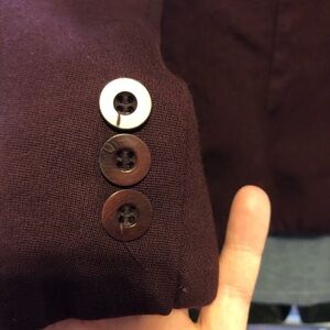 Super cute burgundy blazer by Valerie Stevens Petite. Good pre-owned condition. Shell has no damage or flaws. The lining has some puckering. Has shoulder pads 😊