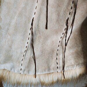 Material: Suede outer shell with a faux fur collar, cuffs, and lining.