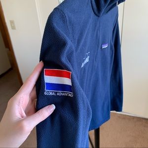 Patagonia Lightweight Fleece Pullover Sweater in Navy Blue. KPMG logo. Outdoors fall winter hiking climbing camping granola girl cozy lounge running warm snow 1/4 zip synchilla.