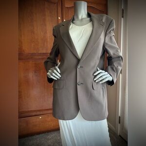 Note: Size and material label missing. Size 40R and I believe Virgin Wool blend. Beautiful taupe color. In excellent condition. So luxurious.